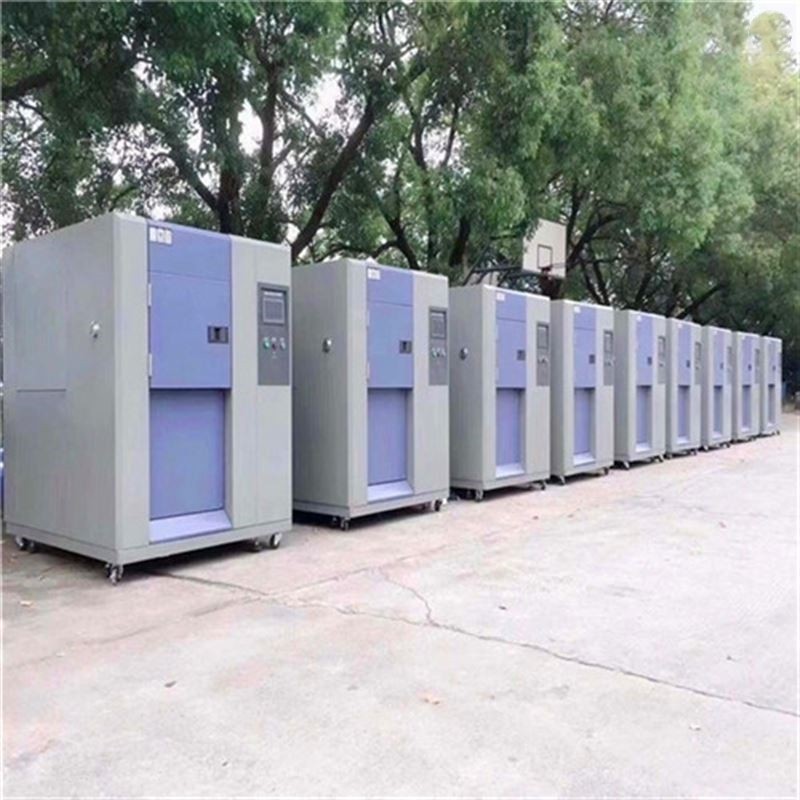 二箱设备区分为高温区、低温区二部分,测试产品置于提篮中,冲击时提篮将测试产品移进高温区或低温区进行衡击,测试产品为动态式。二箱移动式冷热冲击,安全的气压驱动测试物上下来回冲击。采日制原装进口彩色触控LCD中/英文微电脑温度控制器。无纸式记录功能,具实时显示温度冲击试验变化之曲线图及记录双重功能。冷热冲击机构移动时间在10秒内,可符合MIL,LEC,JIS等规范。冷热冲击温度恢复时间在5分钟内,可符合相关试验规范。采用HFC环保冷媒,二元超低温冷冻系统设计,降温快、效率高。