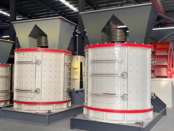 物料由机器上部垂直落入高速旋转的叶轮内,在高速离心力的作用下,与另一部分以伞状形式分流在叶轮四周的物料产生高速撞击与粉碎,物料在互相撞击后,又会在叶轮和机壳之间以物料形成涡流多次的互相撞击、摩擦而粉碎,从下部直通排出,形成闭路多次循环,由筛分设备控制达到所要求的成品粒度。