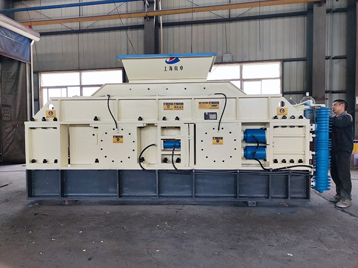 液压对辊破碎机主要由一对平行安装的圆柱形辊轮组成,两辊轮相向旋转。物料从上方喂料口落入辊轮间,在辊轮表面摩擦力和重力作用下被卷入间隙,受到50-100MPa的高压挤压、剪切及揉搓作用。当外力超过物料晶格间聚合力时,物料破碎成小块并从底部排出。