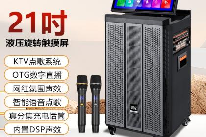 功能特点: KTV/安卓双系统,23寸高清大屏,智能全屏触控、点歌、歌星点歌、遥控点歌,无线WiFi网络连接、DSP声场处理系统、专业网红声卡、多氛围场景、5.0蓝牙、高清输出、USB、TF卡播放、外接12V蓄电池充电